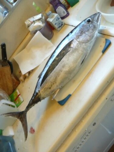 つりたてのまぐろをいただきました。 私は大型魚をおろすのが好きですので、久しぶりに楽しませていただきました。昔は、ハーフムーンベイの鮭をたくさん買って来ては、さばいて冷凍しておりましたが、ここ数年ハーフムーンベイでの鮭つり禁止になったために…