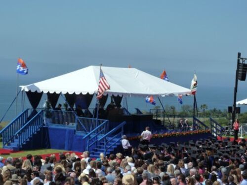 香穂の卒業式当日です。アメリカでは、主に大学の卒業式のことをcommencement と言う様です。 学費が高い事で有名なこの大学。卒業生のリストも金のスタンプだし、卒業式を海が見えるスタンドで行うために、庭に特別にスタンドを設定しています。お金ありま…