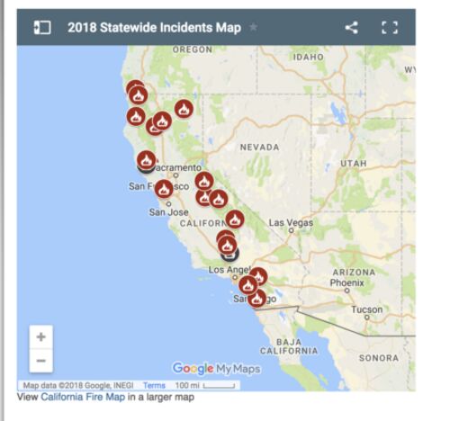 カリフォルニアは観測史上始まって以来の大規模火災が起こっています。 火災が起こっている場所はこの辺り。 多くの箇所で火災が起こっています。 問題は、北のほうで起こっている Mendocino の火事です。7月27日から燃え始めました。湖の北側が焼けています…