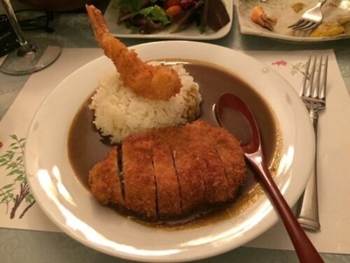最近、料理の腕をあげた開発リーダー。 二二六事件の時に政府の拠点になった帝国ホテルで振舞われたカレーにカツを載せたカツカレー。 エビもおまけについてくる。このカレーは、カレーの概念が変わります。 お抹茶を頂いたそうで、抹茶のチーズケーキ。 甘…