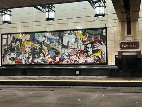 さて、朝の便で、シアトルからシリコンバレーに帰ります。 まずはホテルからホテル近くにあるWestlake駅まで歩きます。 この写真。許可とれてるのか・と心配になる。 なんで電気釜とアリス?近くでみるとこんな感じ。 ということで10分も待たずに電車がきた…