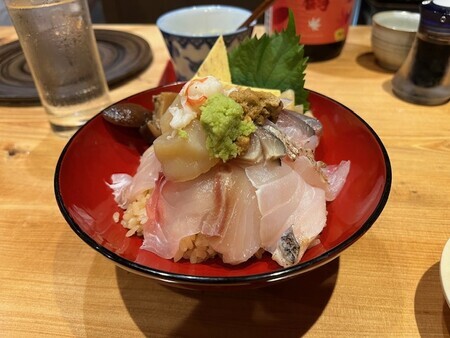 なんとなく、ランチは大盛りな気がしたので、ご飯を3分の1にしてくださいとお願いしても出てきたのはこんなに大きなチラシ寿司。